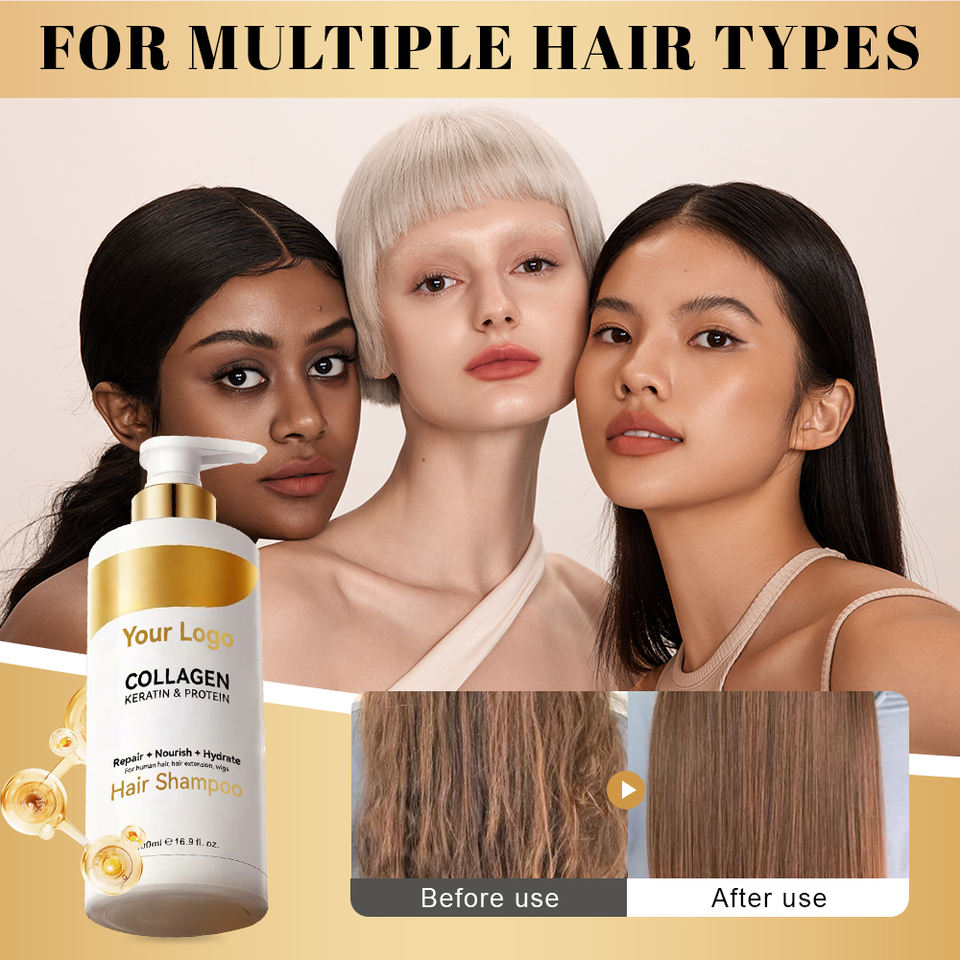 Shampooing et revitalisant capillaires au collagène personnalisé, vitamine collagène, beurre de karité, anti-pelliculaire, réparation à la kératine, traitement capillaire