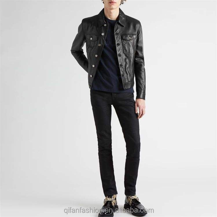 Veste courte en cuir nubuck avec col personnalisé et poches plaquées pour homme et femme antibactérienne