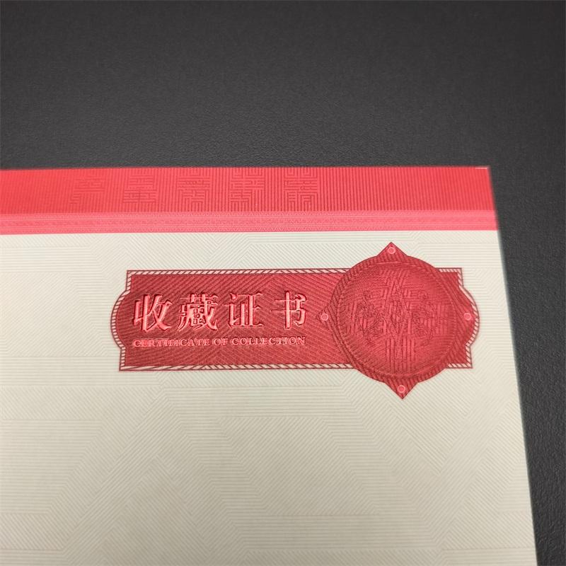 Impression de certificats de collection personnalisée avec impression en creux gravée en fluorescence invisible Certificat de sécurité en relief