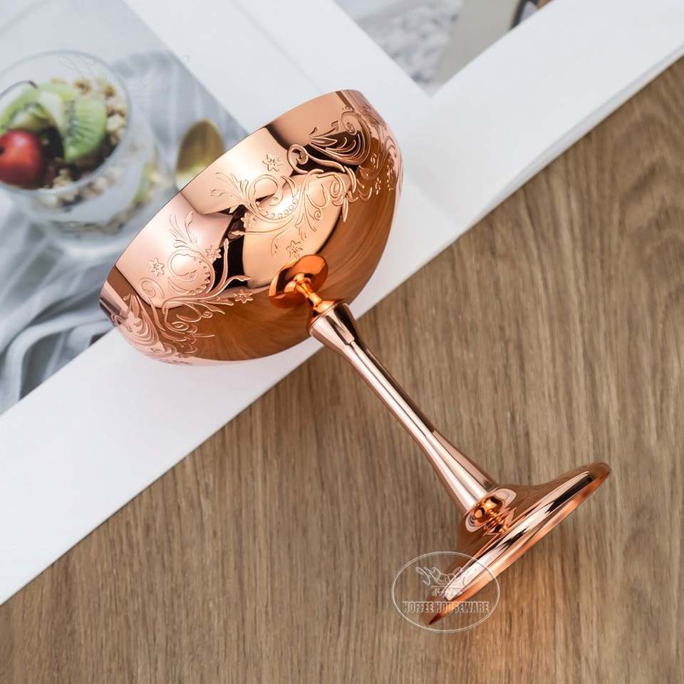 Coupe à vin, cocktail, martini, champagne en acier inoxydable couleur or rose personnalisée 250 ml (8 oz) avec motif gravé pour bar et restaurant
