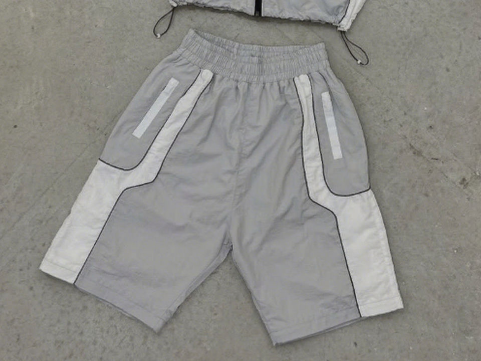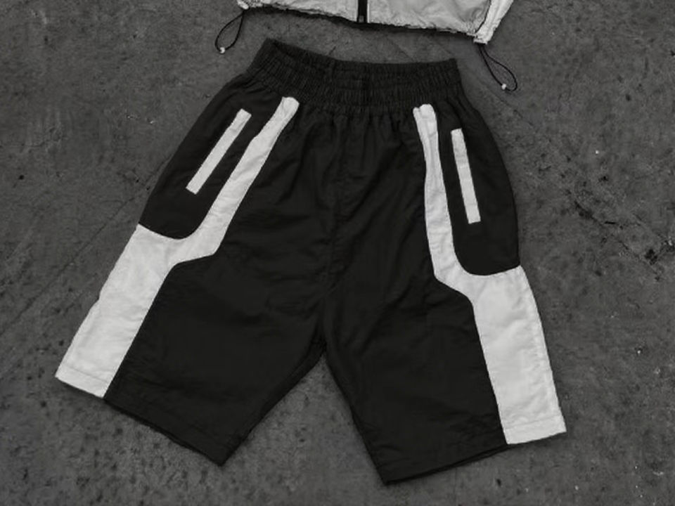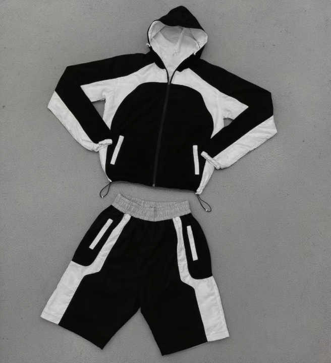 Ensemble de survêtement hip-hop respirant brodé à blocs de couleur personnalisés pour hommes - Veste et short d'été 100 % polyester à motif uni