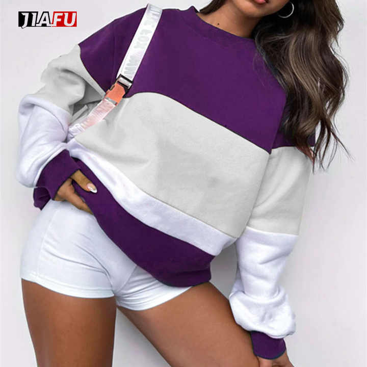 Personnalisé Color Block Sweat Femmes Pull Mode Streetwear Haute Qualité Pull Ras Du Cou Sweats Femmes À Capuche