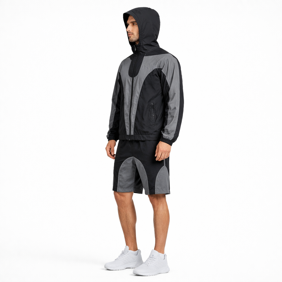 Veste coupe-vent à blocs de couleur personnalisés pour hommes – Style Y2K, imperméable, streetwear, fournisseur en gros aux États-Unis
