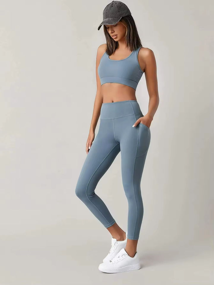 Ensemble de vêtements de sport respirants en dentelle de couleur personnalisée, sans couture, soutien-gorge de sport, leggings de yoga, ensemble de gym pour femmes