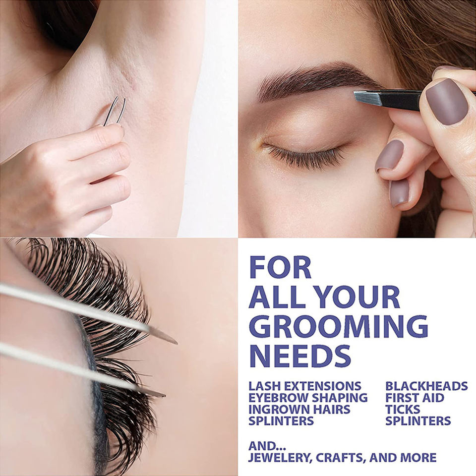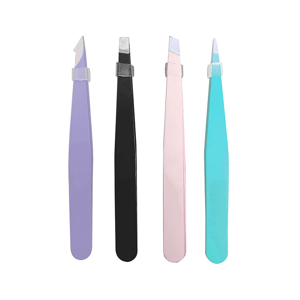 Ensemble de 4 pinces à épiler en acier inoxydable durable, revêtement couleur personnalisé, pointe lisse pour les sourcils