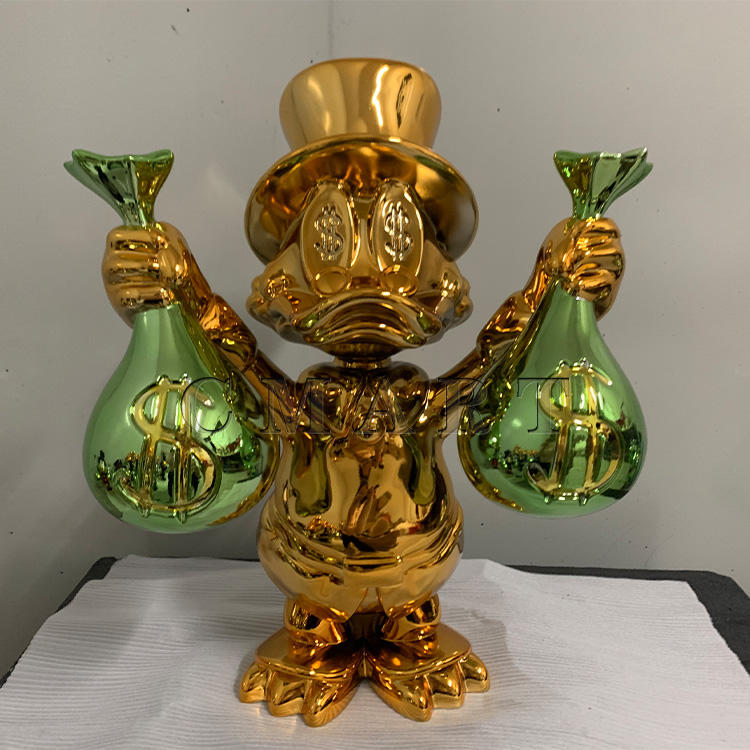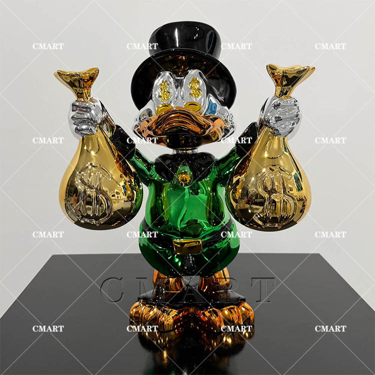 Statue en résine personnalisée Donald Duck et Scrooge McDuck, personnage de dessin animé célèbre, avec sac d'argent, thème millionnaire, pour les amateurs d'art, peinte à la main