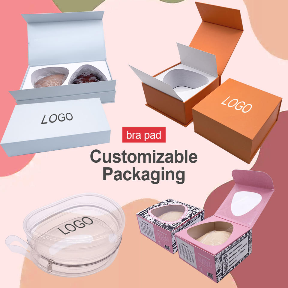 Le tout est emballé dans des cartons, un étui est 150 paires de coussinets de poitrine. L'emballage de sac à fermeture éclair est utilisé par défaut, et d'autres emballages peuvent être personnalisés selon les besoins du client. (OPP PET PVC Satin)