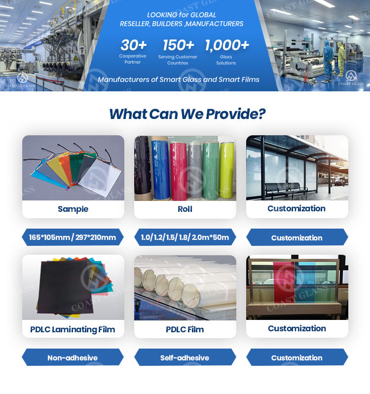 Film PDLC intelligent décoratif, teinté en couleur personnalisée, avec logo, pour meubles, vitrines, armoires, casiers à vin, film de confidentialité commutable et gravé