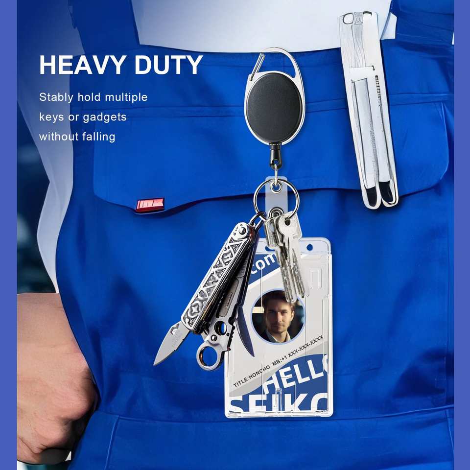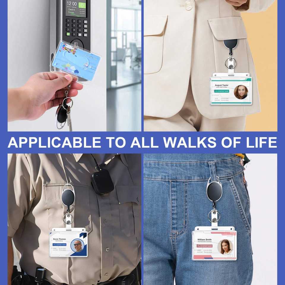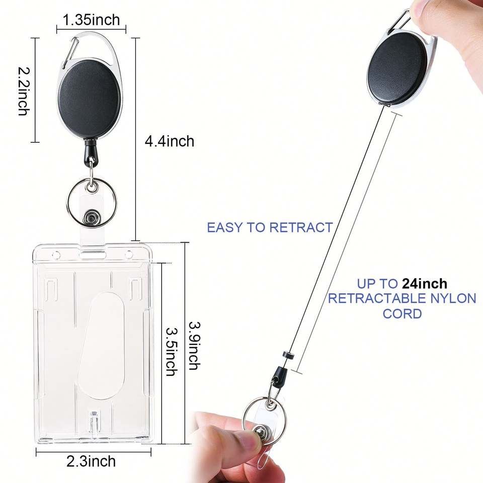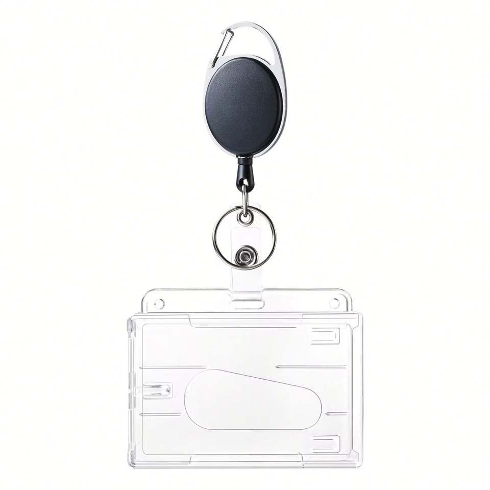 Porte-badge rétractable bidirectionnel avec logo couleur personnalisé, clip vertical/horizontal et pochette pour carte d'identité – Accessoire