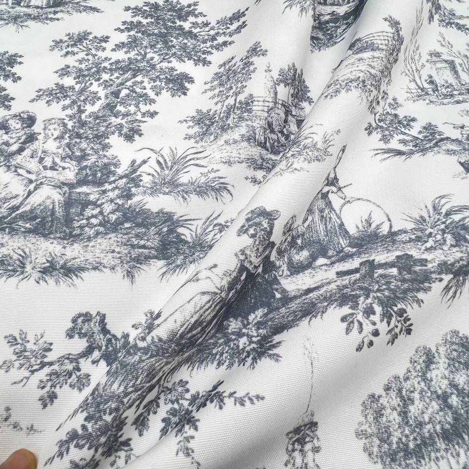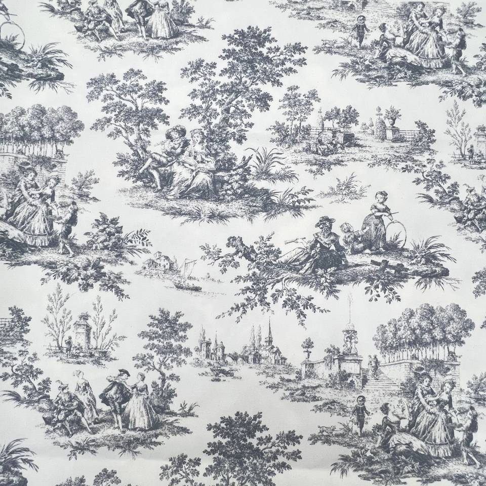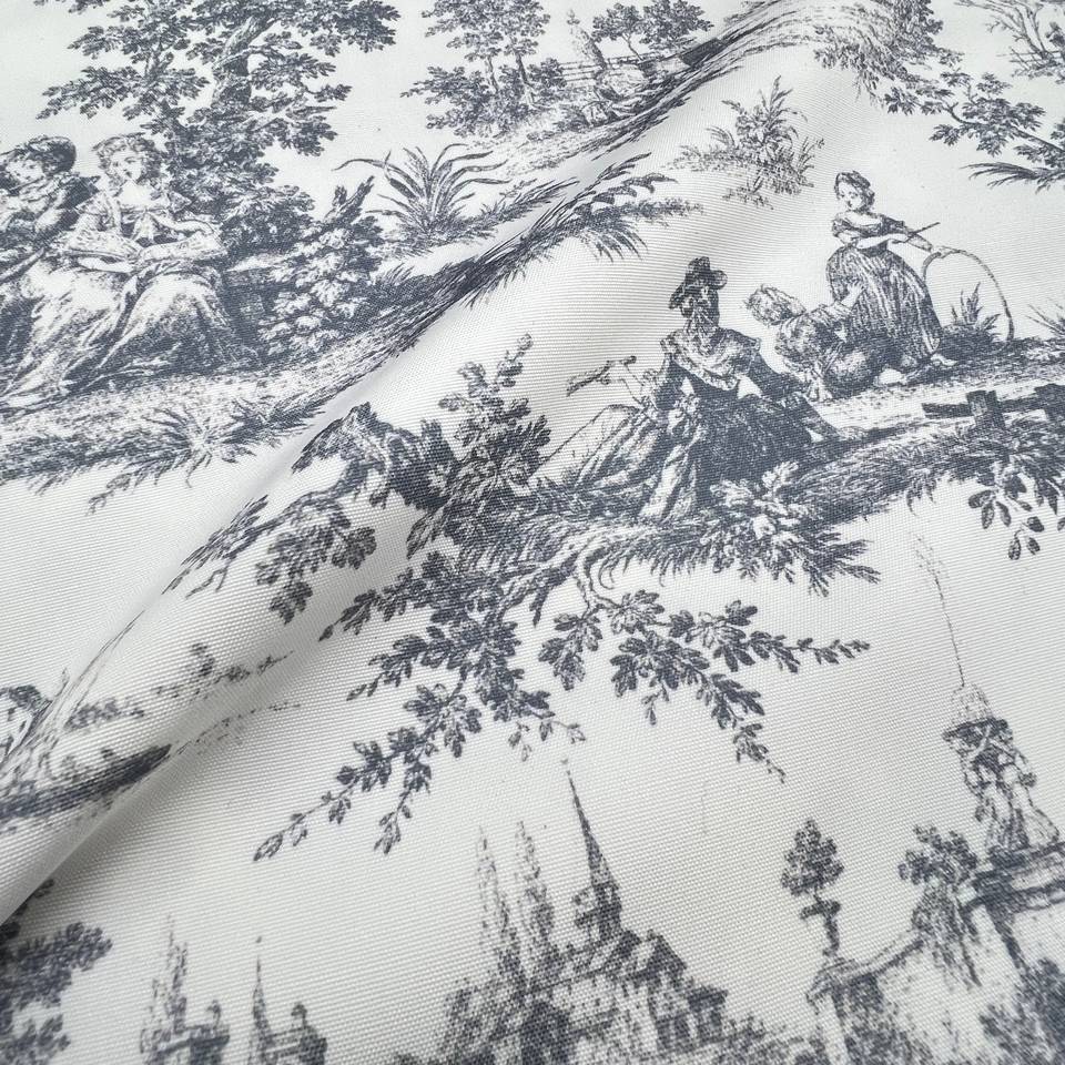 Tissu en toile tissée imprimé Toile de Jouy style Palais gris à motif couleur personnalisé pour la décoration intérieure, nappes, serviettes et sacs