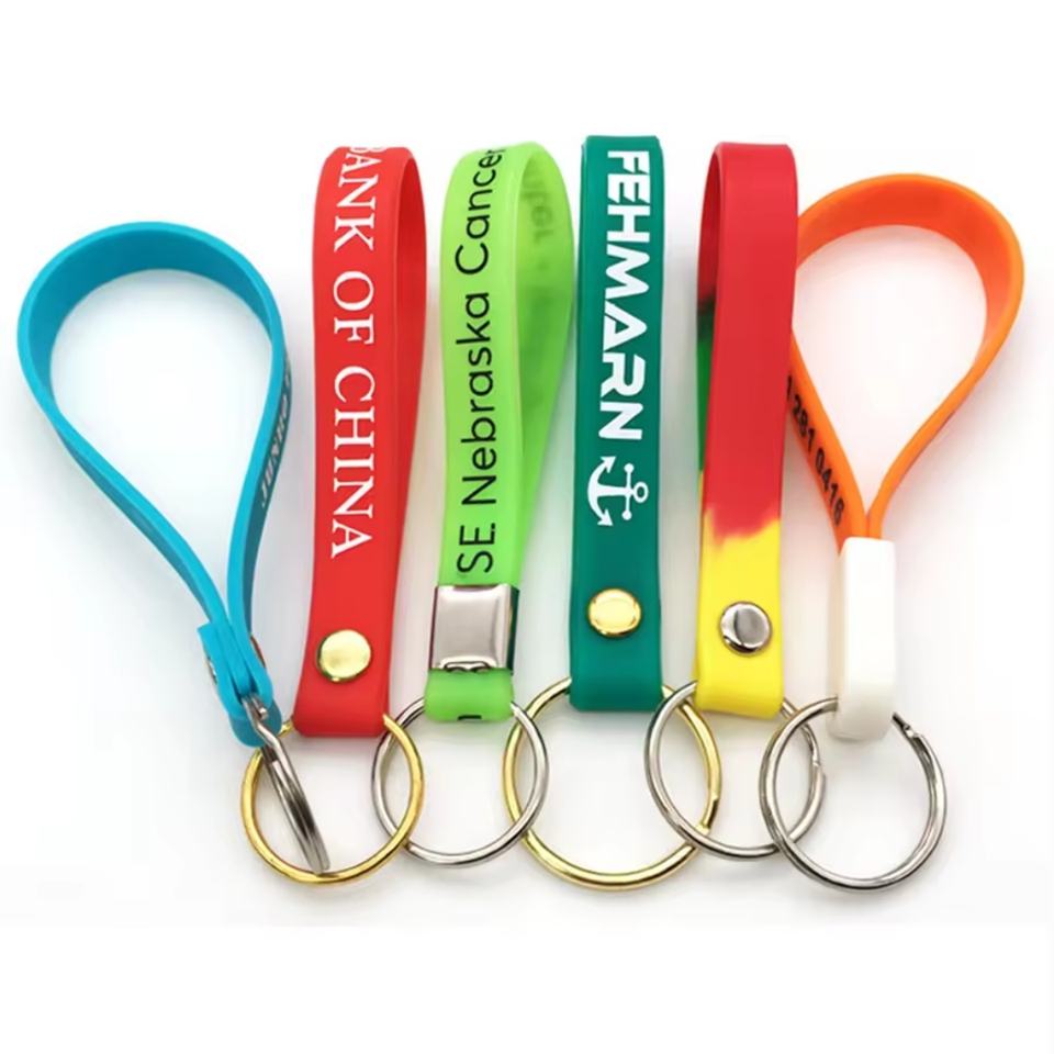 Porte-clés en silicone de couleur personnalisée, bracelet en silicone personnalisé avec impression de logo, bracelet en caoutchouc personnalisé chaud