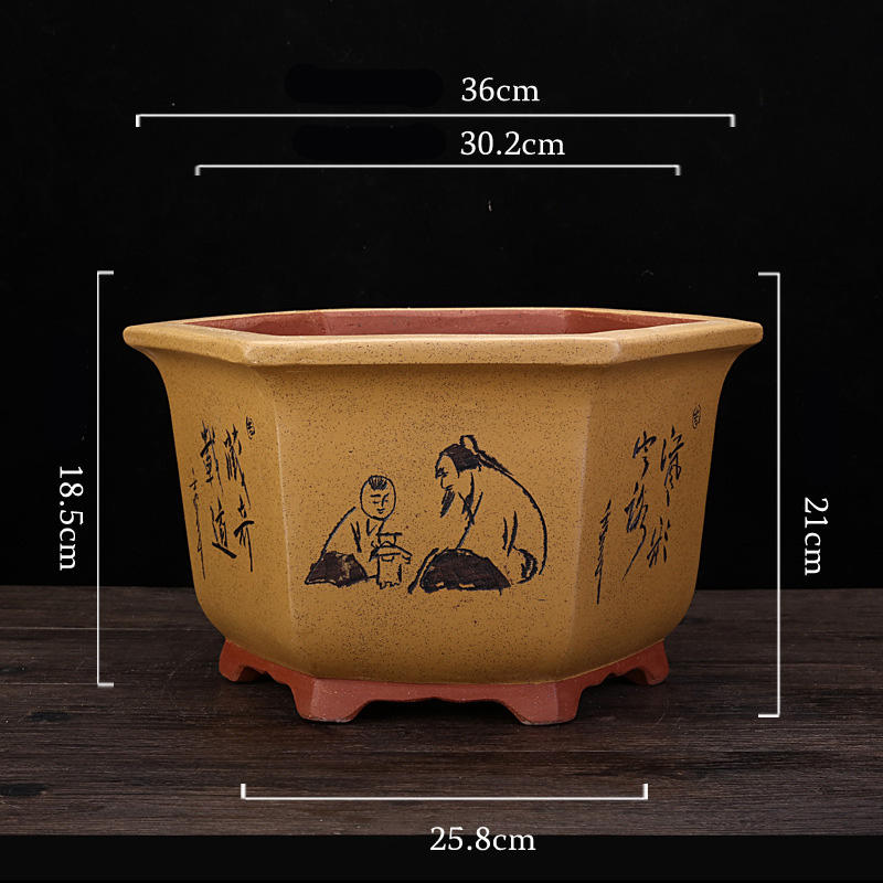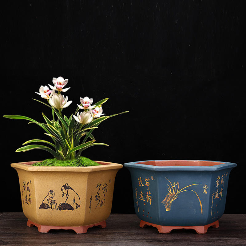 Design de taille de couleur personnalisée hexagone Grand Large Yixing argile violette non émaillée plante en céramique arbre bonsaï Pots de fleurs