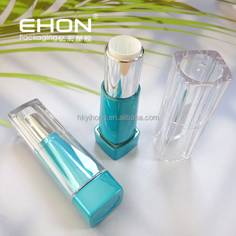 Tubes à lèvres carrés à paroi épaisse de couleur personnalisée, base métallique, capuchon transparent, conteneur à lèvres en plastique, emballage de maquillage