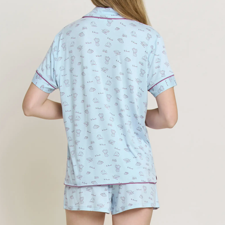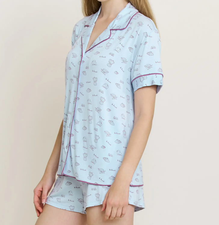 Ensemble de pyjama fin personnalisé à manches courtes et short imprimé pour femme – Vêtements de nuit confortables pour la maison – Vente en gros