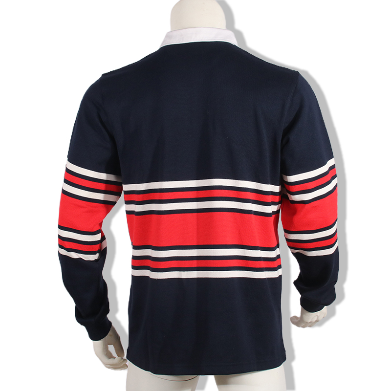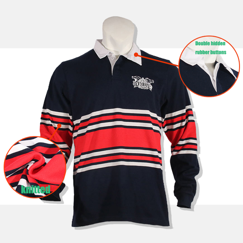 Maillot de rugby traditionnel personnalisé à manches longues en coton teint en fil, tricoté, avec motif rayé