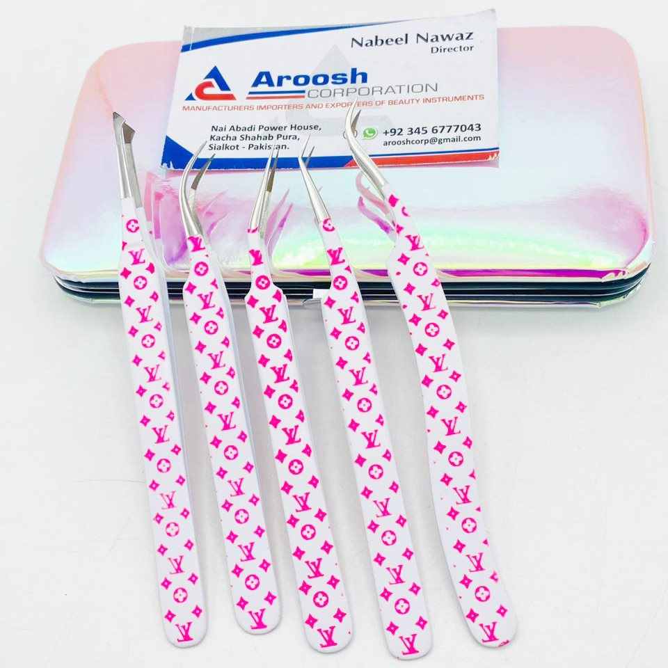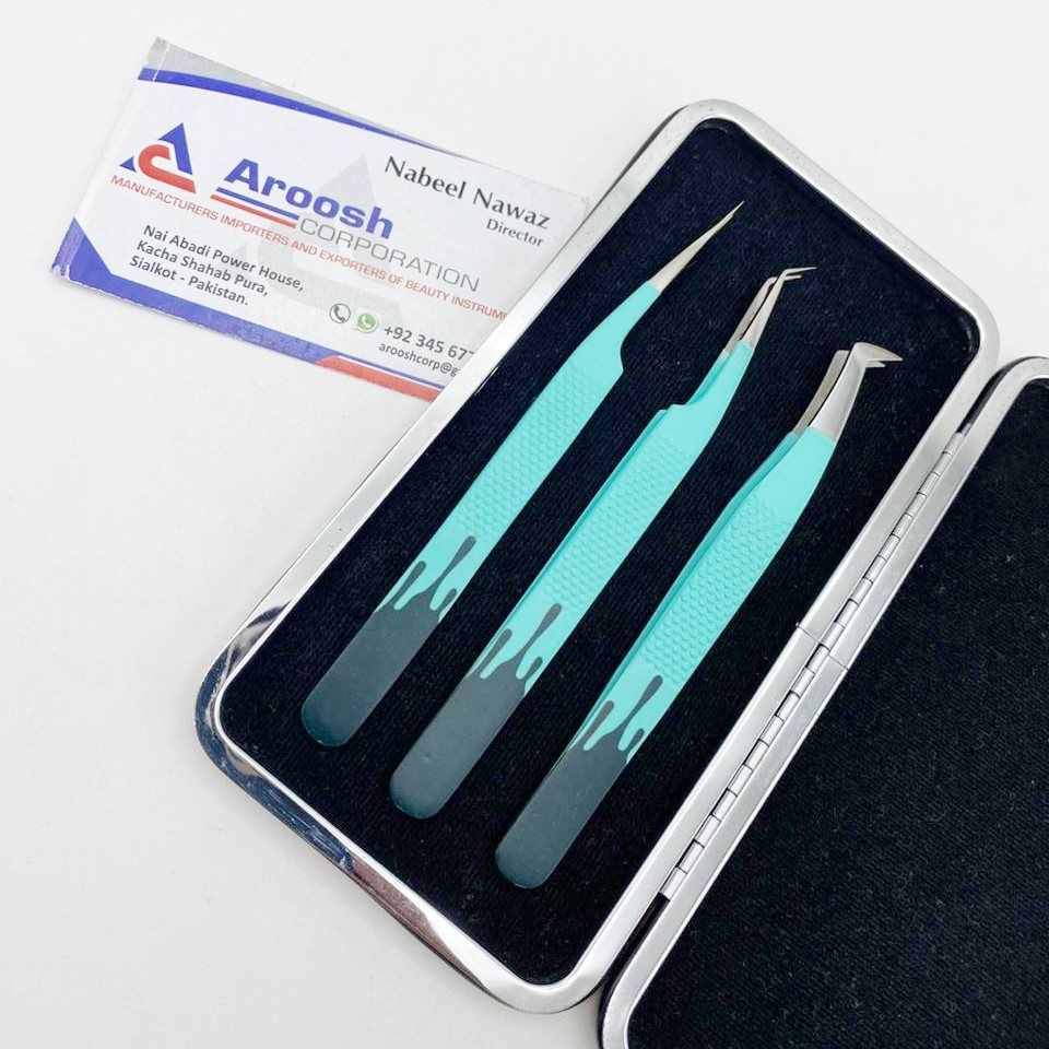 Ensemble de pinces à épiler de couleur personnalisée en gros en acier inoxydable massif Dumont avec poignée en diamant pince à épiler professionnelle pour l'extension des cils durable et durable
