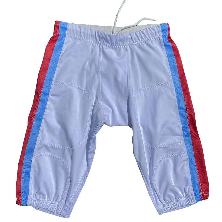 Pantalon solide blanc de couleur personnalisée pantalon de football américain à fines rayures côté rouge bleu ciel impression par sublimation pour jeunes respirant