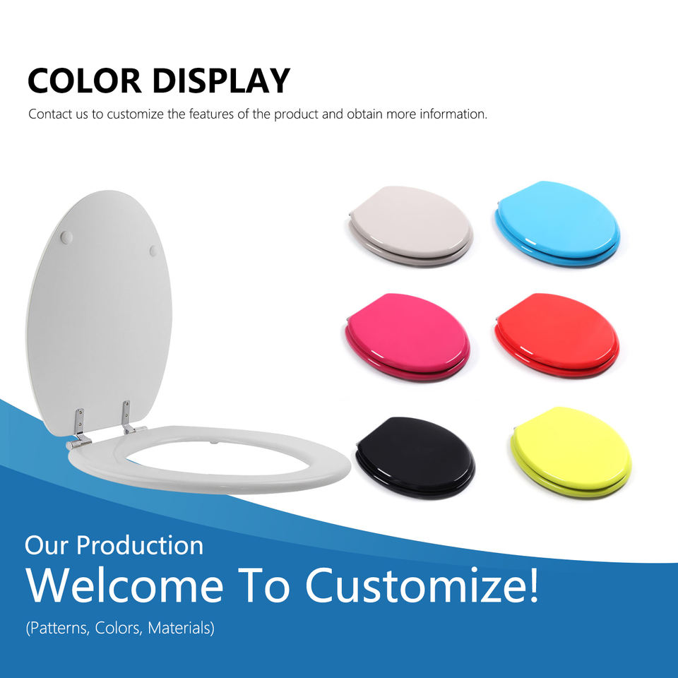 Couleur et motif personnalisés, siège de toilette allongé en bois moulé gris brillant avec charnière en métal, couverture de toilette en bois durable pour salle de bain