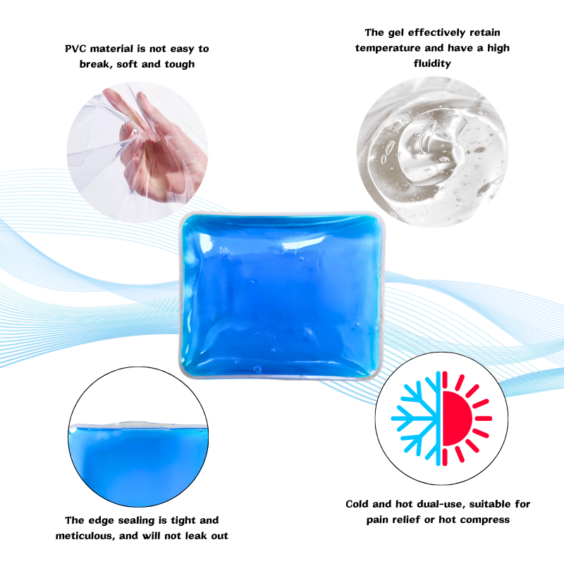 Compresse de gel réutilisable pour la thérapie par le froid et la chaleur, couleur et taille personnalisées, carré 10x8 cm, pour soulager les maux de tête