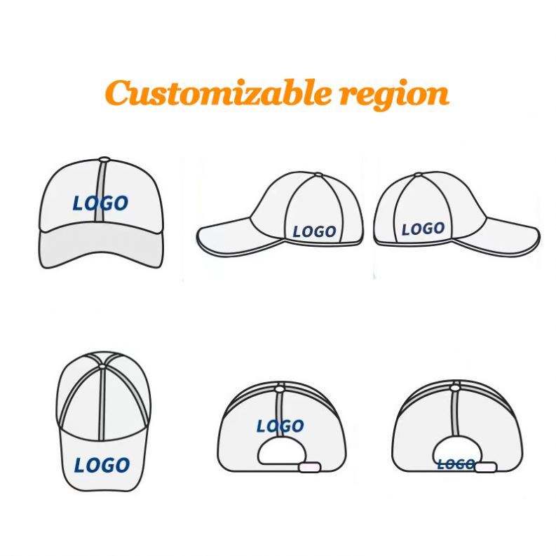 Bord/visière, Panneau avant, Panneau gauche, Panneau droit, Partie incurvée au dos, Personnalisé