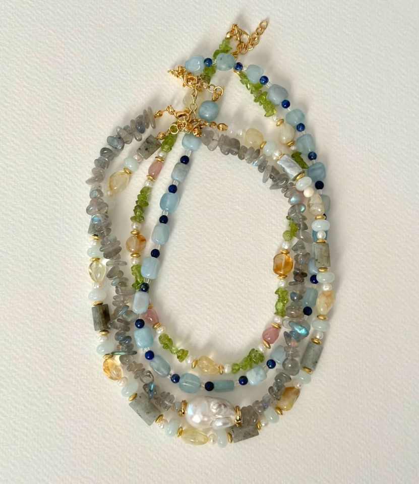 Collier personnalisé en pierres précieuses colorées, perles de péridot, citrine, quartz rose, collier perlé, bijoux de guérison tendance, fournisseur de cadeaux