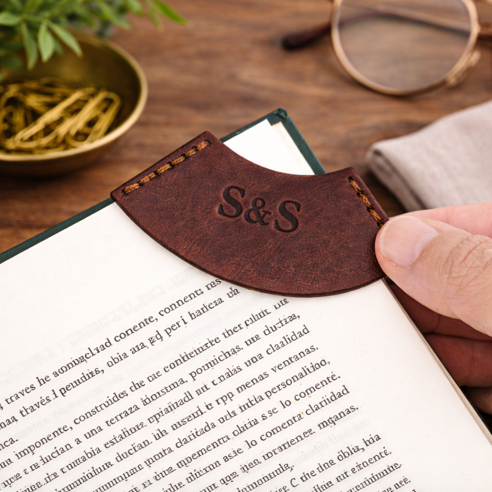 Marque-page personnalisé en cuir véritable coloré en forme de cœur, fait main, gaufré, réutilisable - Papeterie scolaire promotionnelle en gros