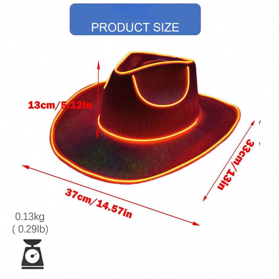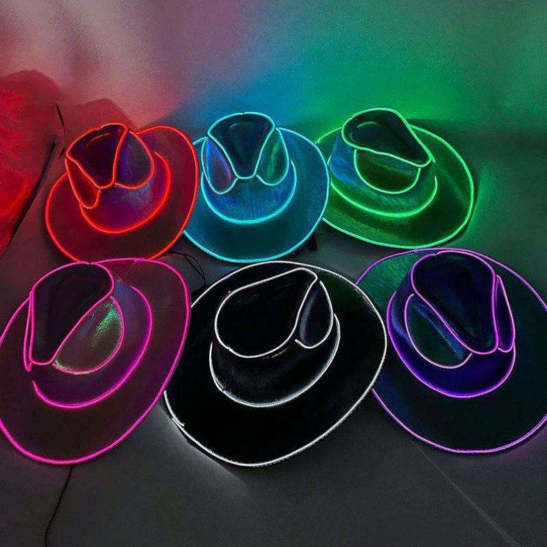 Chapeau de cowboy/cowgirl lumineux LED personnalisé et coloré pour adulte, style western, chapeau de fête LED, chapeaux de cowgirl colorés en gros
