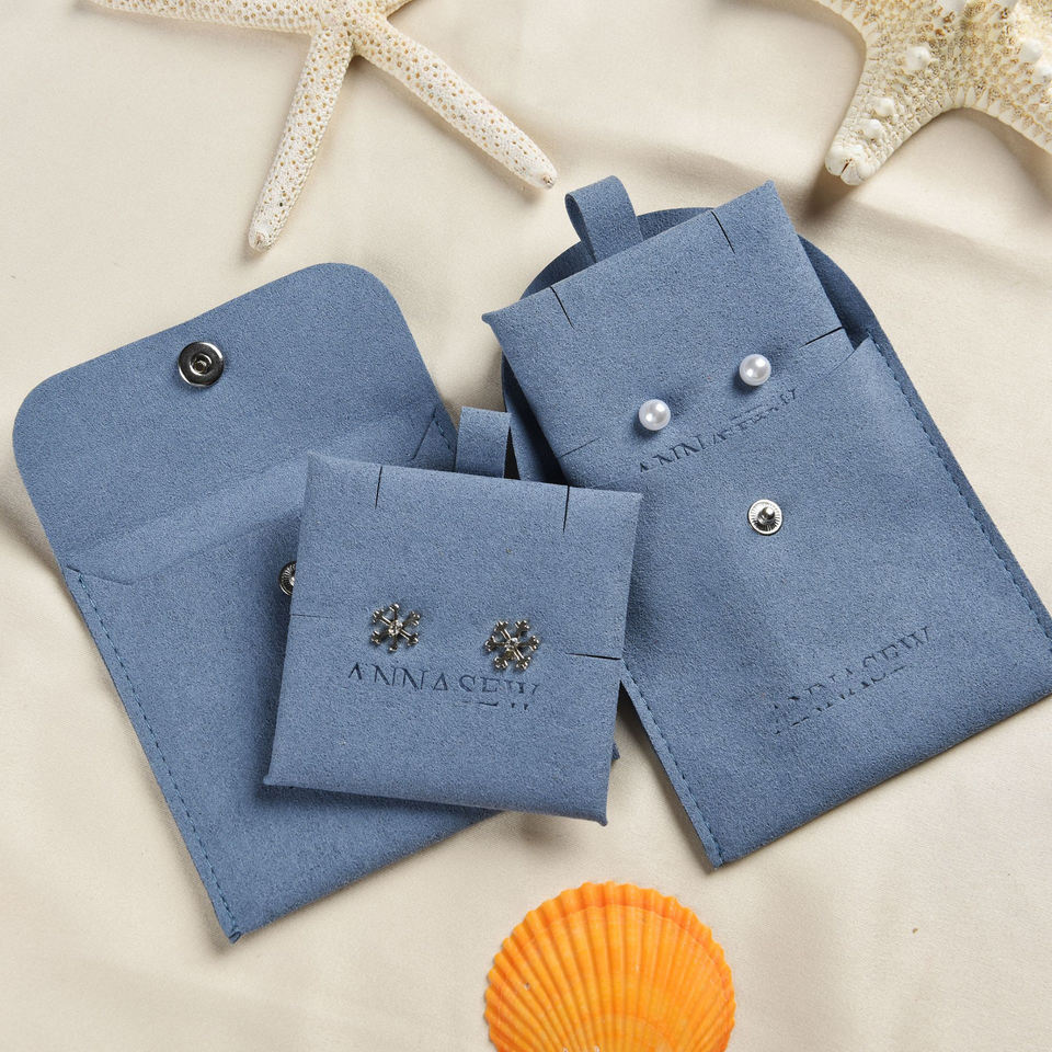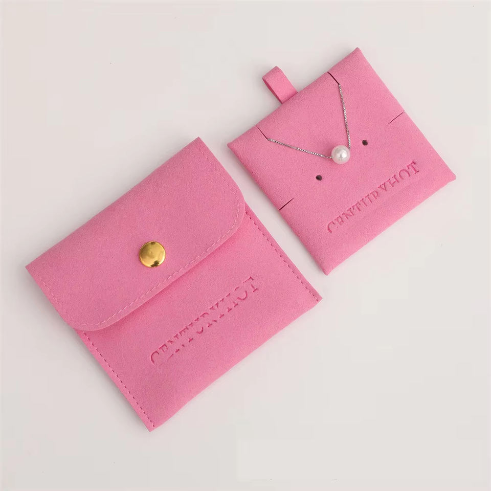 Enveloppe en cuir suédé microfibre colorée personnalisée pochettes à bijoux recyclable bouton en tissu de velours imprimé logo cadeaux bonbons