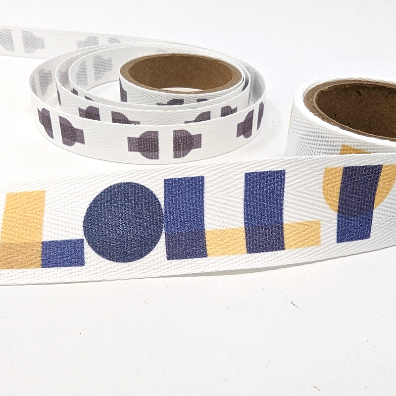Logo d'impression coloré personnalisé ruban de coton naturel sergé de marque ruban à chevrons fleur ruban de coton pour emballage cadeau