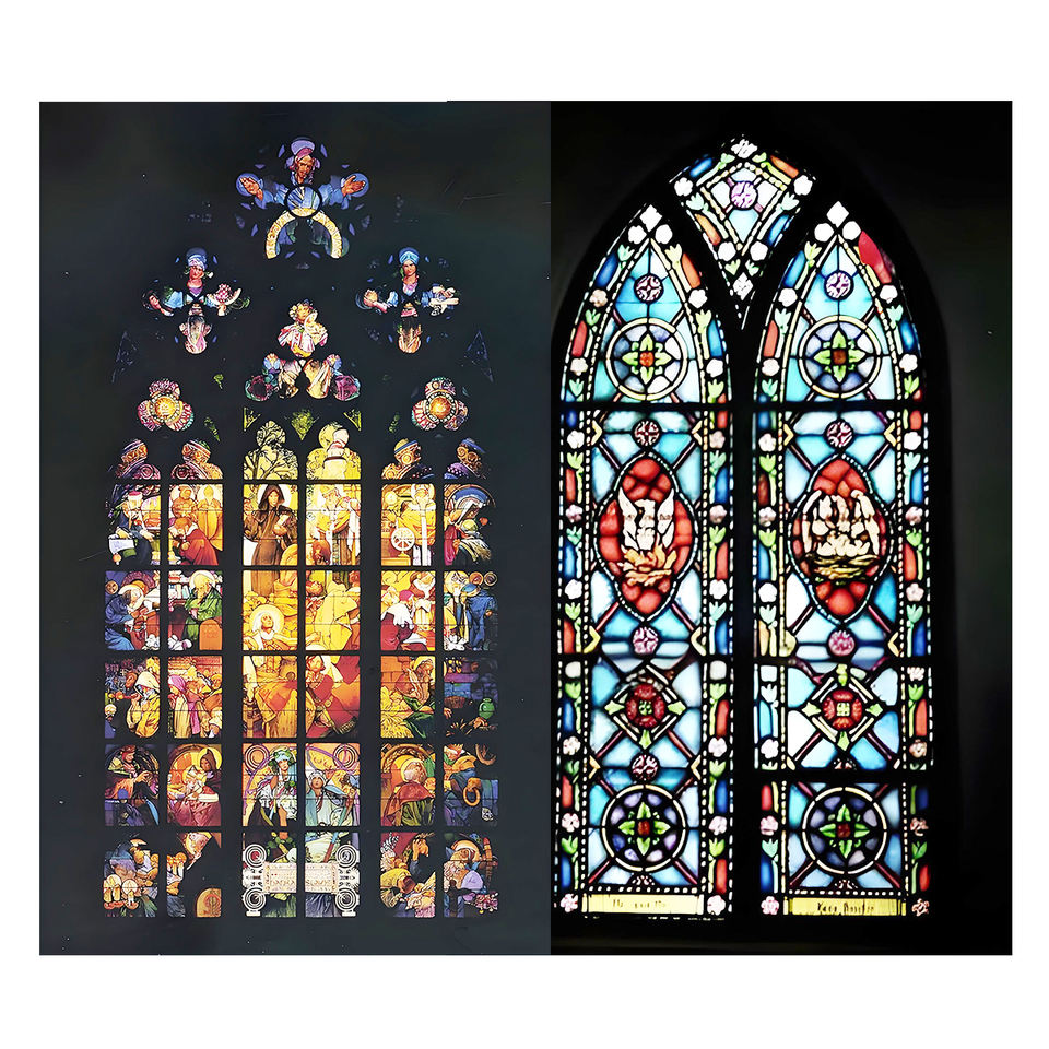 Panneaux de vitraux décoratifs pour églises, couleurs personnalisées, solides, haute transmission lumineuse, pour portes, fenêtres et cloisons
