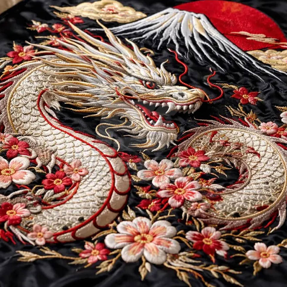 Veste Sukajan brodée en tissu durable, couleurs personnalisées, coupe confortable, respirante et écologique, idéale pour l'hiver