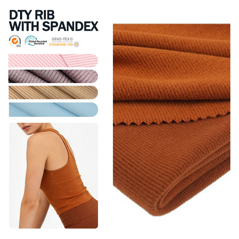 Tissu côtelé DTY 2x1 élastique personnalisé et confortable avec Spandex pour vêtements intérieurs (col)
