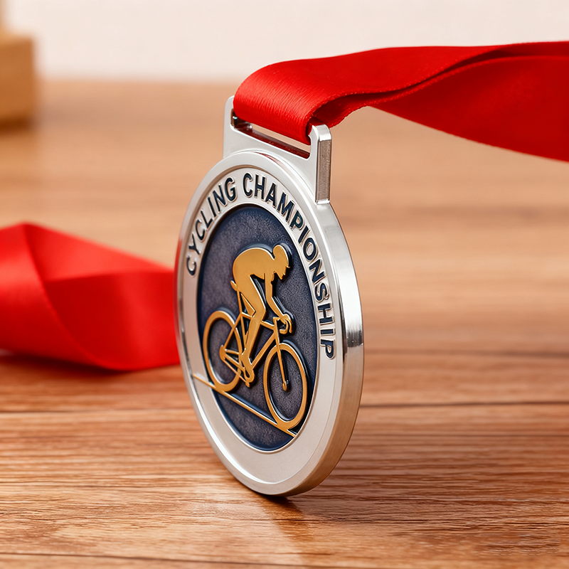 Médaille commémorative personnalisée de sport de vélo en métal de qualité supérieure Médailles de défi de cyclisme gravées au laser en vrac pour la course