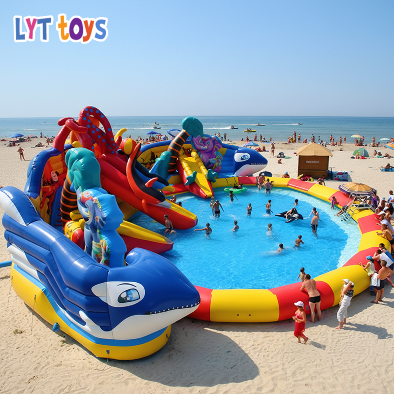 Parc aquatique gonflable commercial personnalisé pour l'extérieur, équipement de parc aquatique pour les familles et les événements, plaisir des vacances