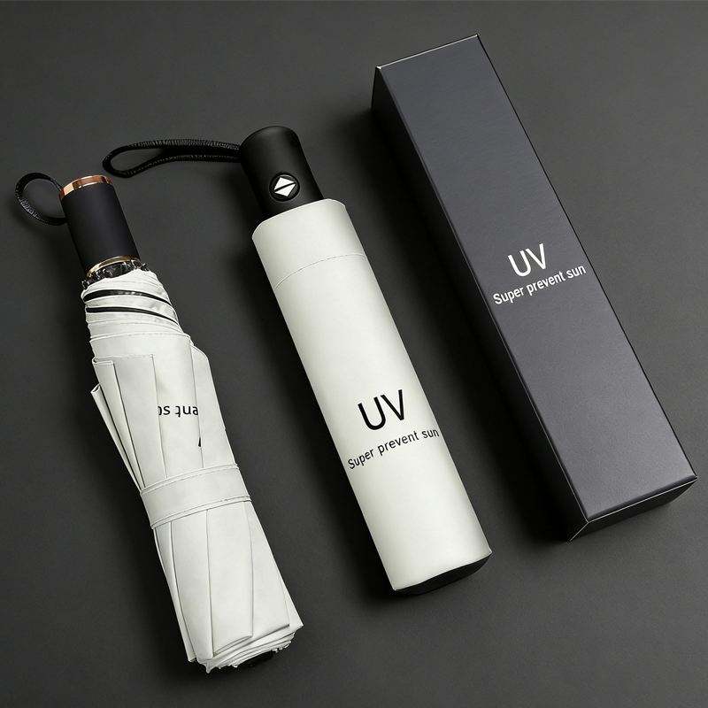 Parapluie pliant compact personnalisé avec logo imprimé, anti-UV, automatique, poignée en plastique de haute qualité, vente en gros, cadeau promotionnel d'entreprise