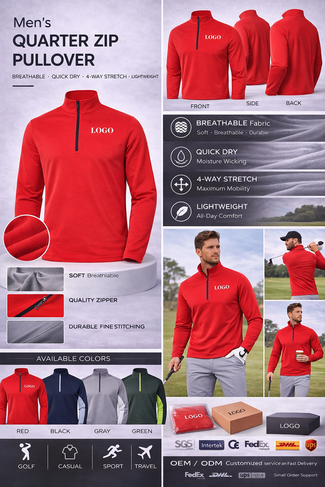 Sweat-shirt de golf personnalisé à col zippé, respirant, anti-humidité, séchage rapide, manches longues