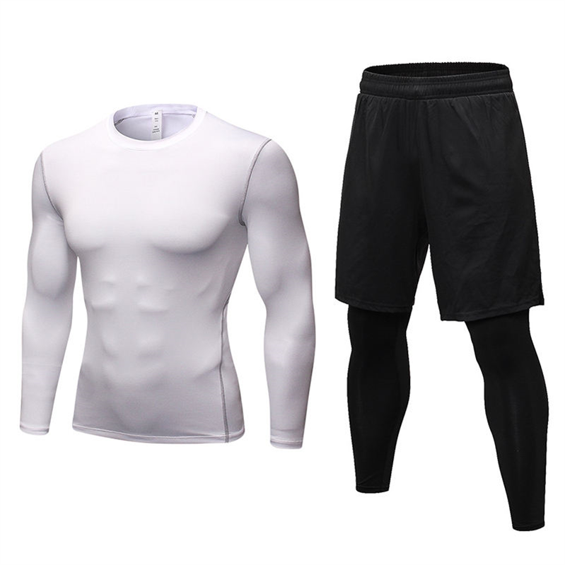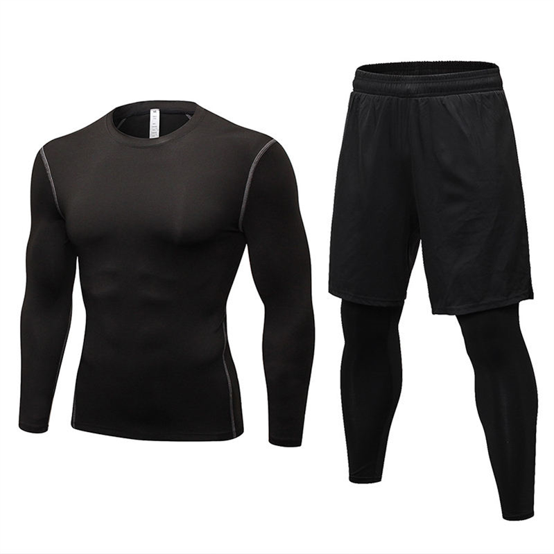 Pantalon de compression personnalisé Chemise Haut Veste à manches longues Ensembles athlétiques Vêtements de sport pour hommes Ensemble 5 pièces