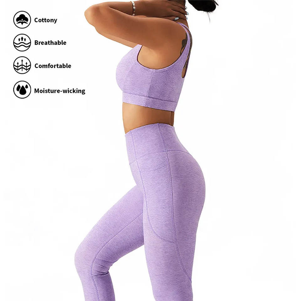 Ensemble de yoga deux pièces pour femme : Soutien-gorge de sport à bretelles larges avec empiècements contrastants et short taille haute croisé