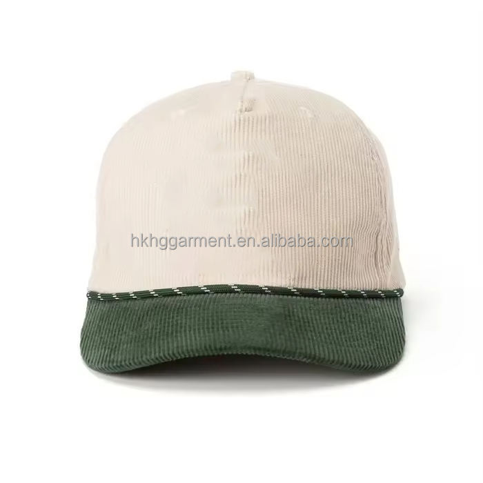 Casquette Trucker en Corduroy Personnalisée avec Corde, Casquette de Baseball à 5 Panneaux, Casquette Snapback Décontractée Bicolore Brodé