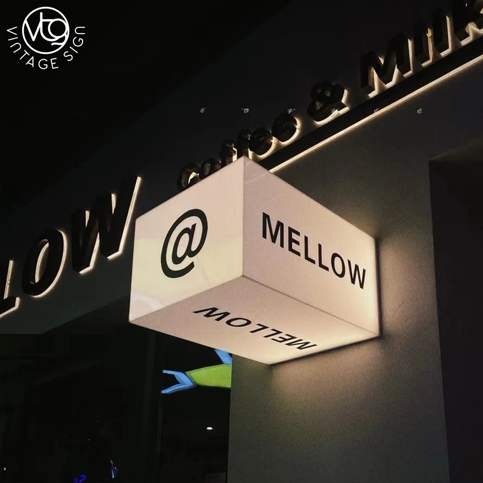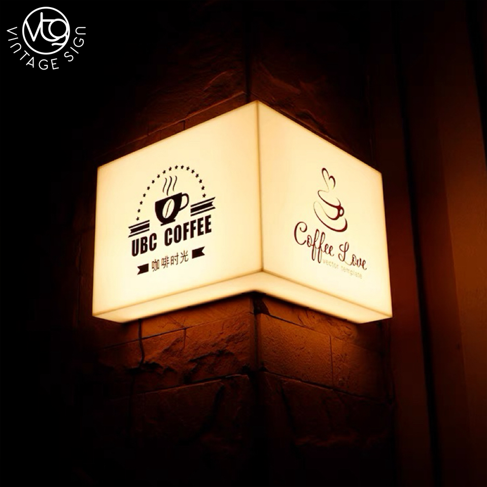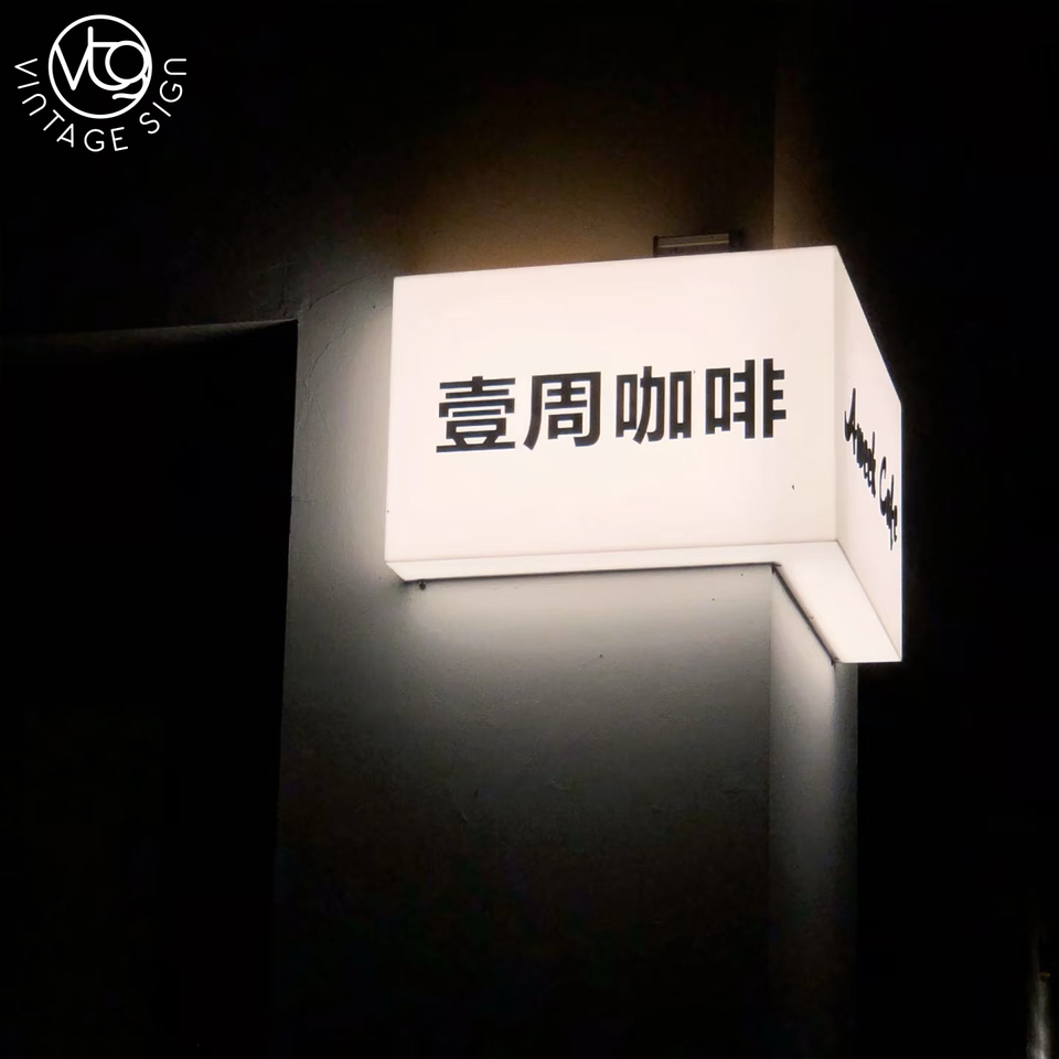 Boîte à lumière LED en acrylique personnalisée pour coin, enseigne cube à 90 degrés pour devanture de magasin commercial extérieur et installation facile en DIY