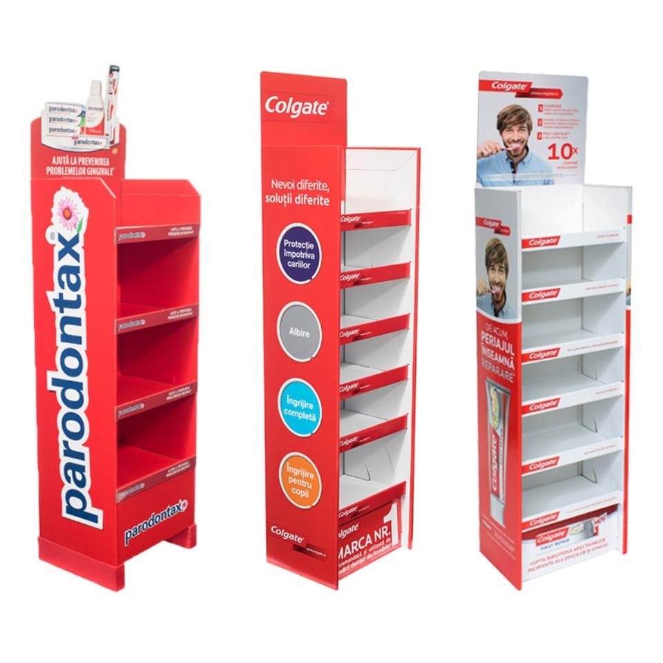 Étagère d'affichage en carton ondulé personnalisée pour les produits de soin corporel en magasin de détail, pour les présentoirs de sol POP