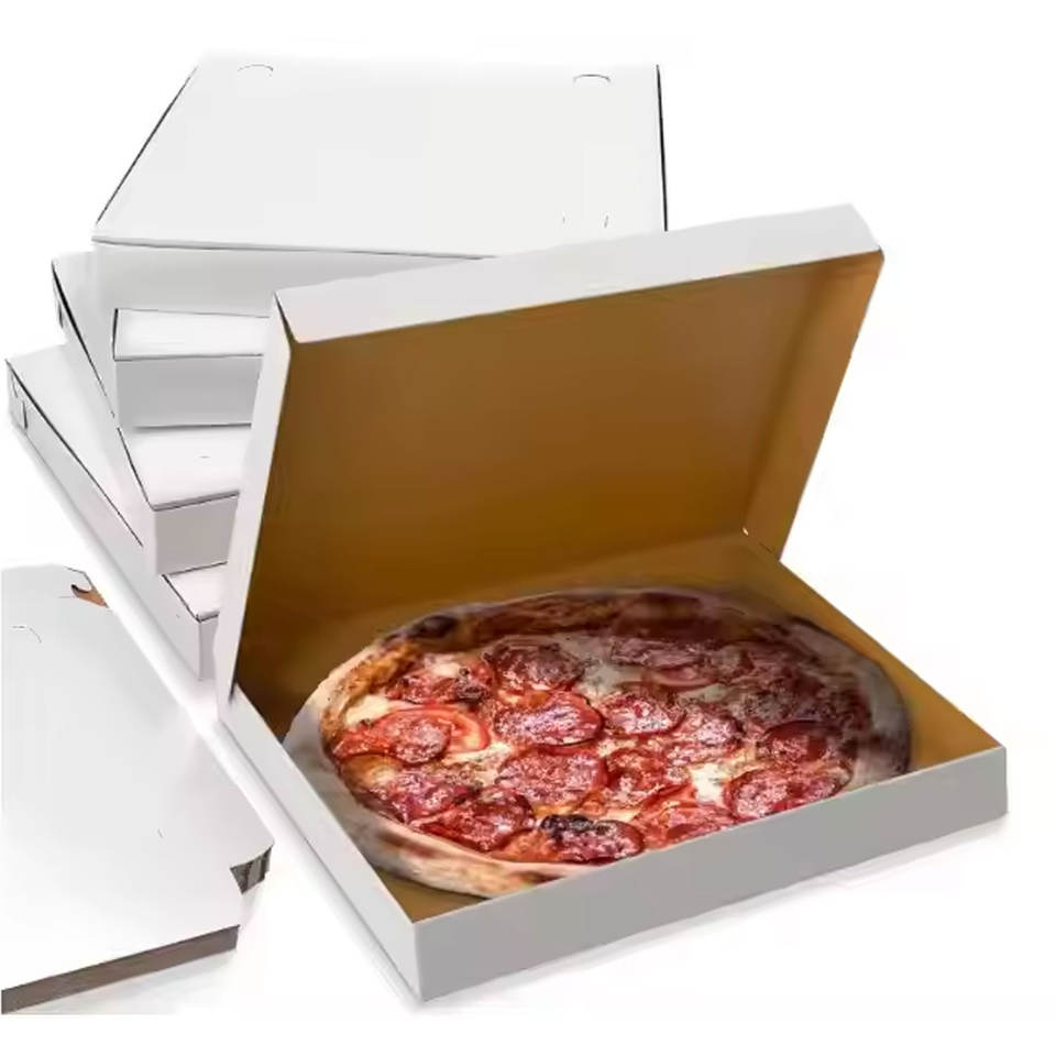 Boîtes à pizza ondulées personnalisées, blanc sur brun, emballage de pizza en carton kraft durable pour emporter ou livraison