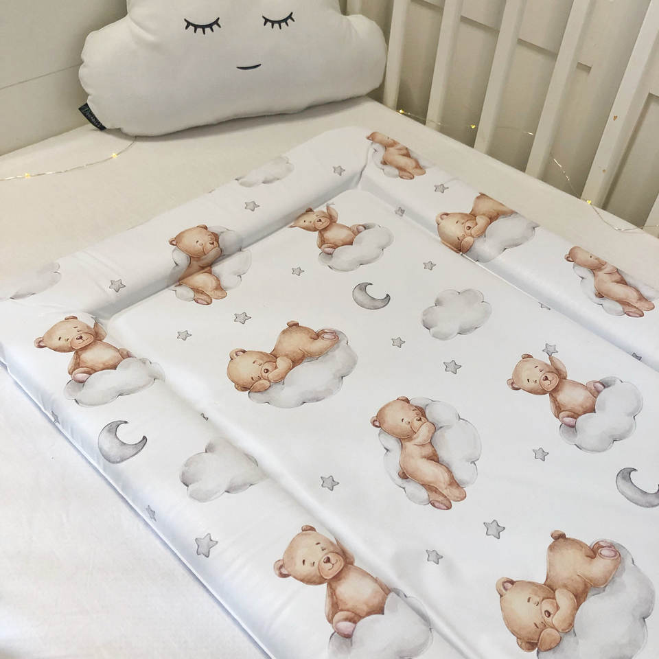 Housse de matelas à langer en coton personnalisée avec motif ours et nuage pour nouveau-né