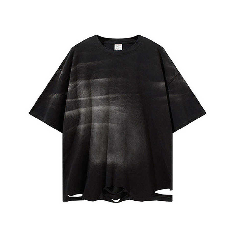 T-shirts en coton épais, respirants, effet usé, lavage à l'acide, coupe oversize, économiques, col rond, pour adultes