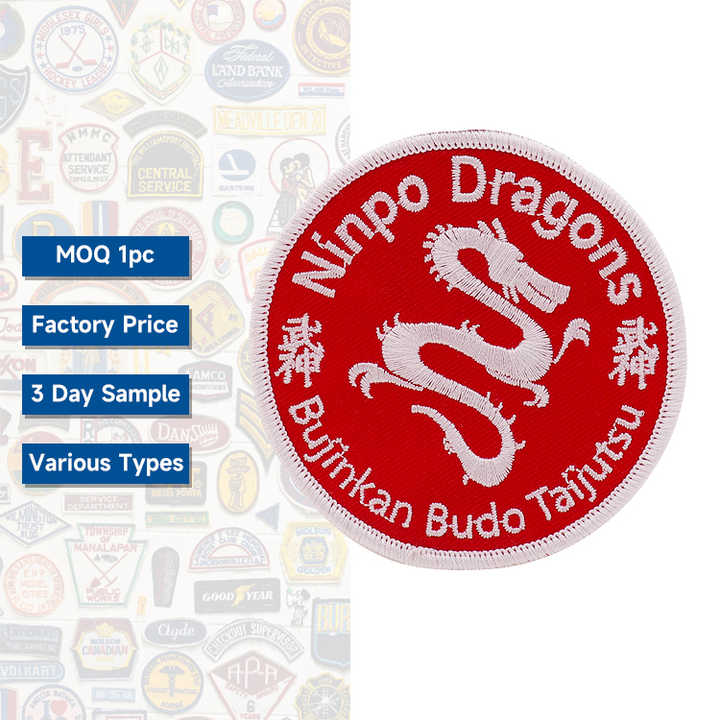 Écusson en coton personnalisé Brode Écussons de broderie de dragon rond pour vêtement à capuche personnalisé