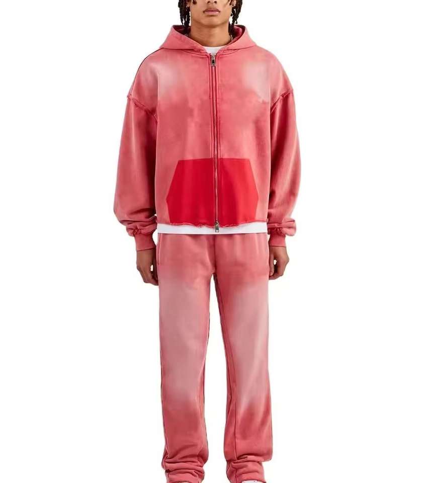 Ensemble de survêtement décontracté en coton pour homme, style jogger, avec motif délavé au soleil, idéal pour l'hiver