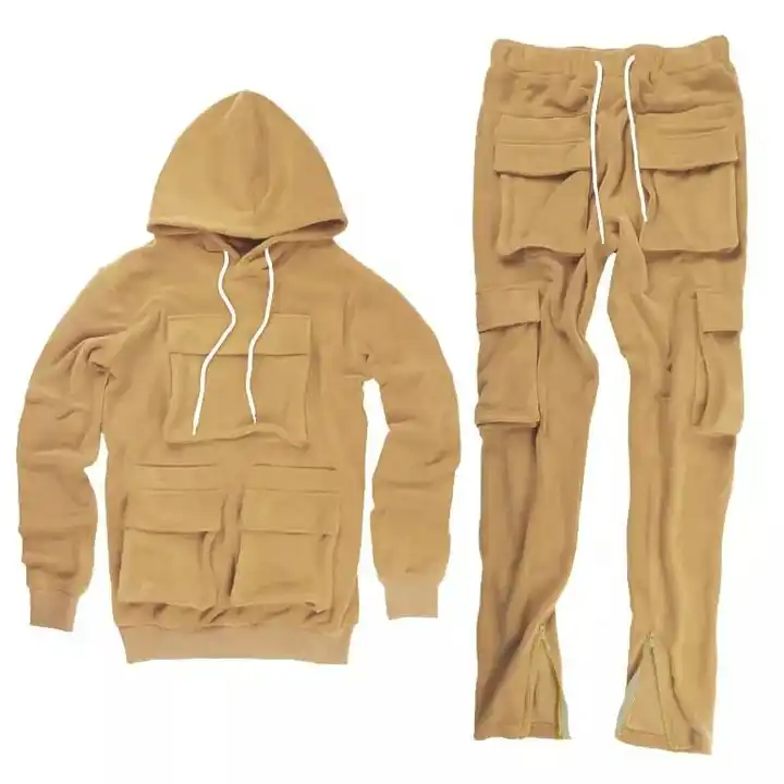 Vente de gros Ensemble survêtement cargo OEM Style empilé personnalisé en coton pour homme deux pièces