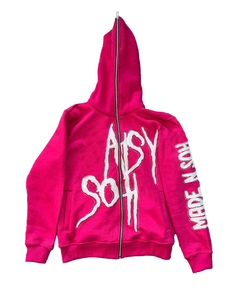 Ensemble de survêtement deux pièces en coton personnalisé pantalons de survêtement évasés empilés et sweats à capuche zippés unisexe pour hommes femmes survêtement imprimé bouffant