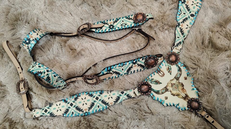 Ensemble de matériel d'équitation en cuir aztèque de crâne de vache personnalisé en cuir véritable selle anglaise légère équipement d'équitation saisonnier