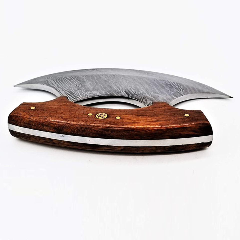 Couteau Ulu en acier Damas fabriqué sur mesure, construction pleine soie avec manche en bois durable, idéal pour trancher, hacher et éviscérer